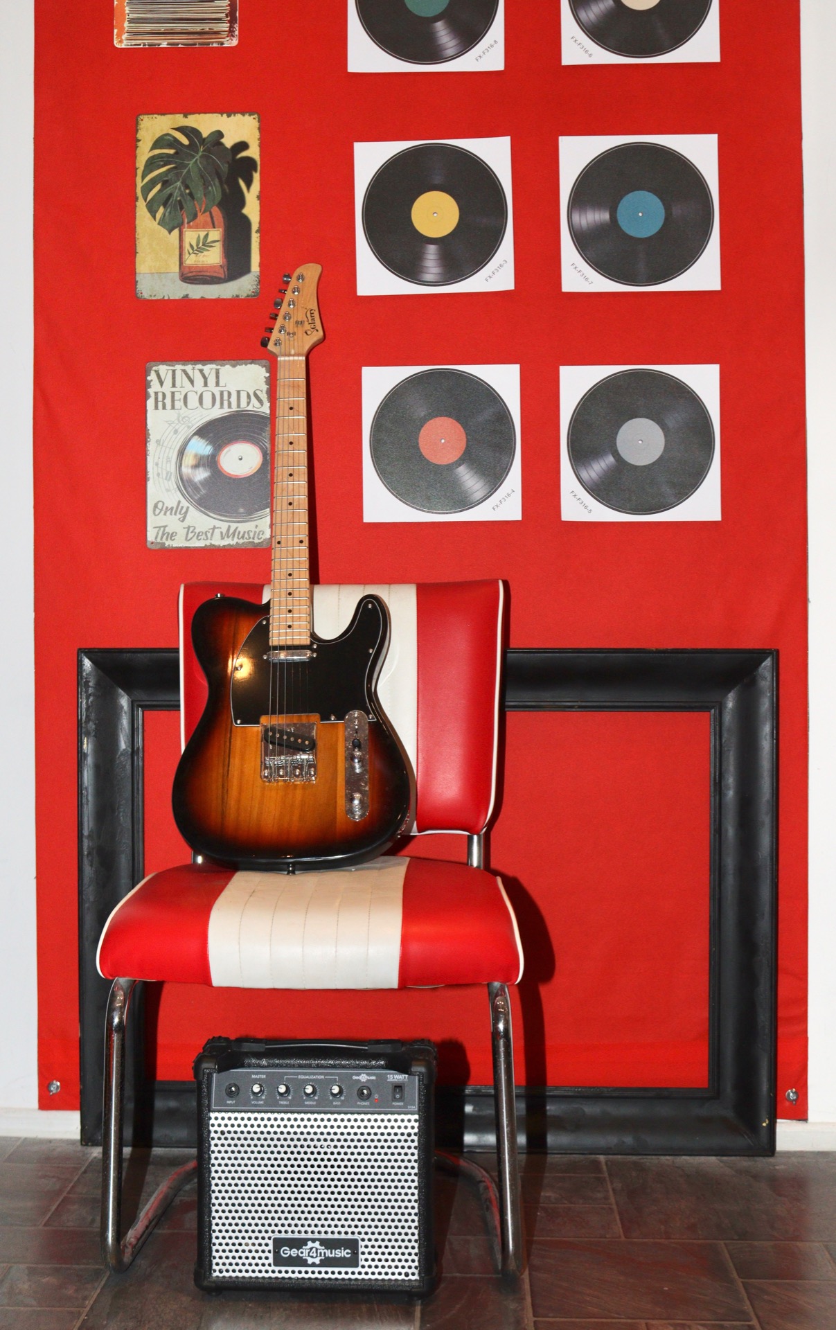 Electric Guitar, 50's Mic with Stand, Artificial Grass,